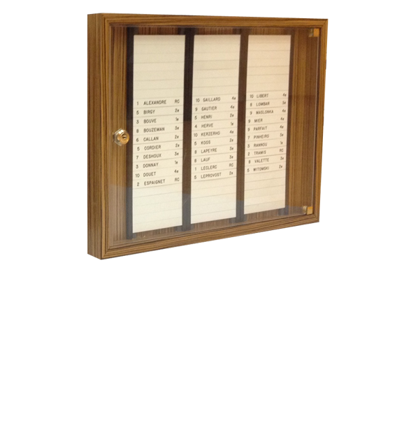 • Réglettes verticales noires pour plaques gravées de 15 x 120 mm (h x L).